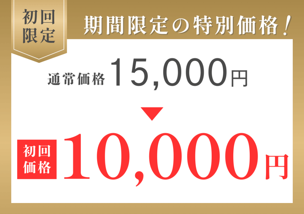 通常1回15,000円の施術を、初回限定 10,000円にてご体験いただけます。