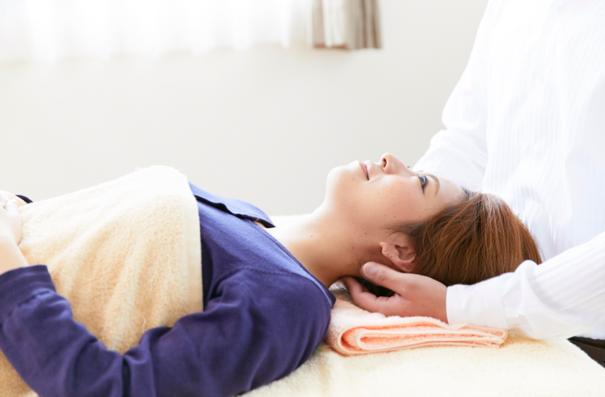 頭痛の大きな要因とされる「頚椎2番のわずかなズレ」をやさしいタッチで矯正し、首から後頭部へと流れる血流を整えます。